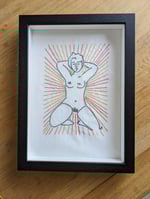 'Goddess' is hand stitched on white cotton and taken from an original ink drawing. Framed size 24 X 32.5cm