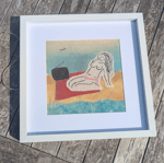 Float mounted and framed in a natural wood frame, 32,5cm x 32.5cm